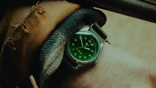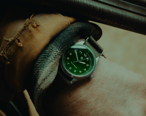 With an embossed dial and a subtle matt metallic texture in the paint, the darker periphery adds contrast that makes the numerals easier to read as well as adding an almost tropical sun-bleached-dial feel from a life lived outdoors.