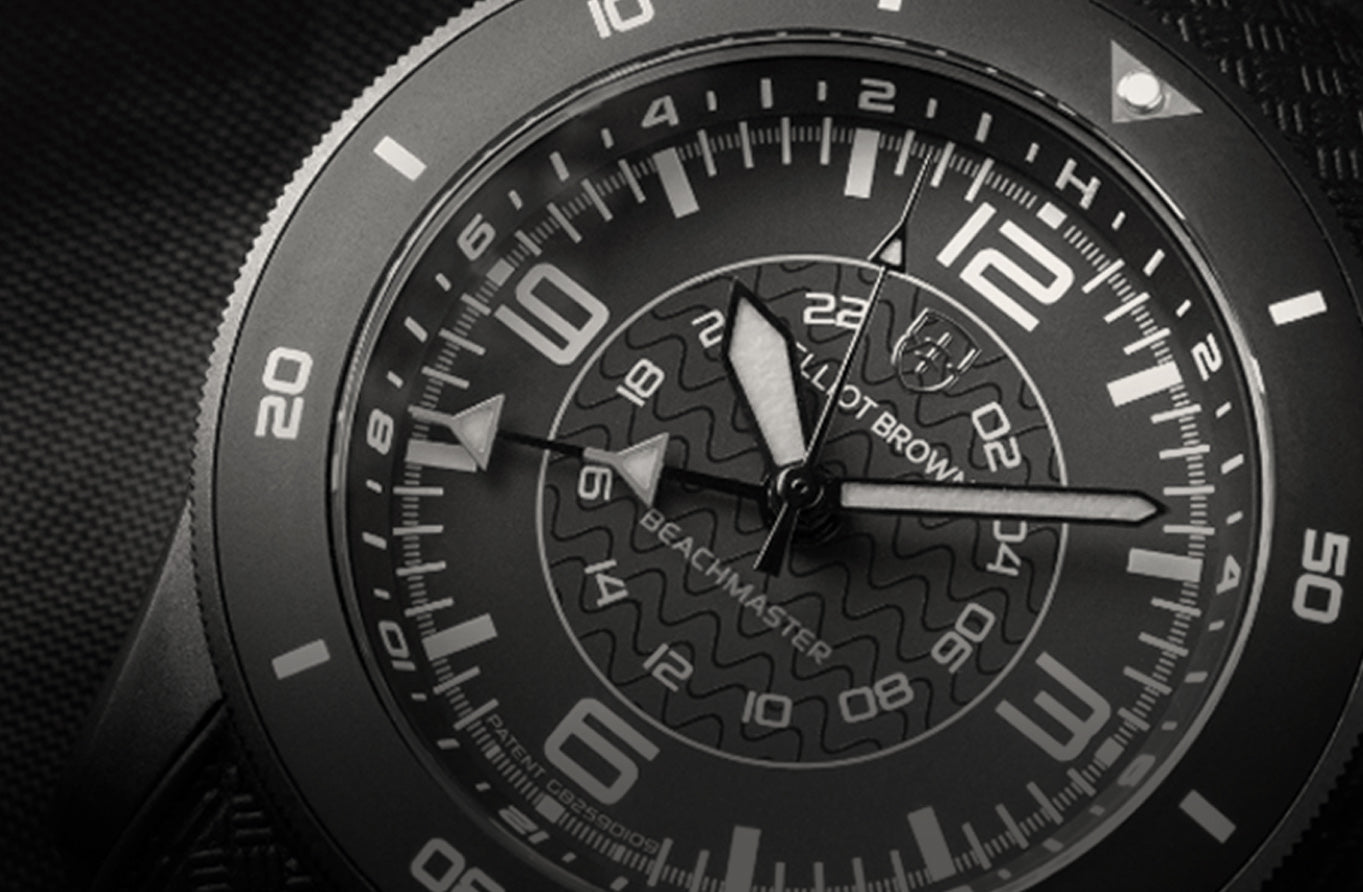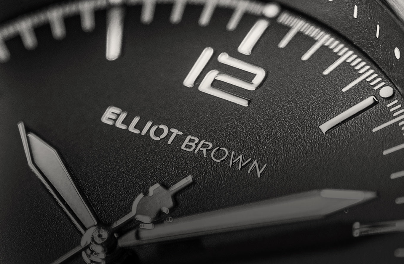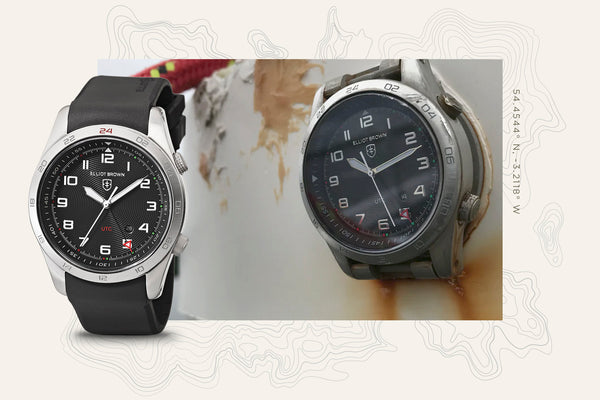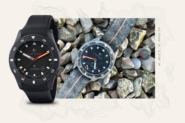 Filming for the release of our first Land Rover collab watch, the film required the Defender to accelerate hard through a rocky puddle in which there was a Land Rover x Elliot Brown Holton. 15 times the stunt driver smashed over the watch almost spitting it out from under the hard accelerating tyre. Did it survive? Hardly a scratch.