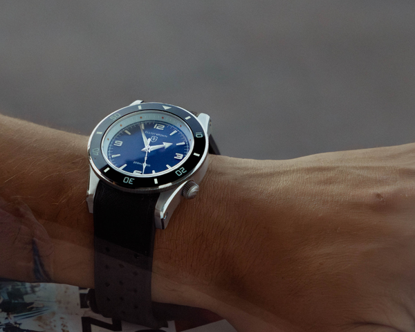 Sized at an easy to wear 40mm and fitted with our signature rubber strap with inner rope-breather lines and pebble-like split buckle deployant, it’s ready to work hard but wears light. Swap in a steel bracelet for formality or a fabric strap to loosen the mood.